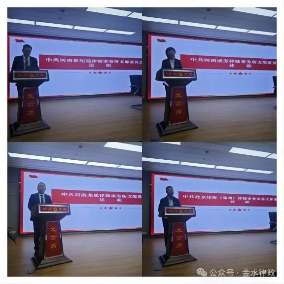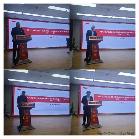 河南世纪通律师事务所党支部、河南成务律师事务所党支部、河南荣康律师事务所党支部、北京炜衡(郑州)律师事务所党总支、上海浩信(郑州)律师事务所党支部、河南致极律师事务所党支部、郑州市律师协会金水区第十二联合党支部、河南黑岩律师事务所党支部、河南尤扬律师事务所党支部、上海大沧海新闵(郑州)律师事务所党支部10个党组织书记分别进行述职,汇报2023年度党建工作开展情况,剖析问题与不足,说明2023年党建工作存在问题的整改情况,同时提出改进的方法、措施。
