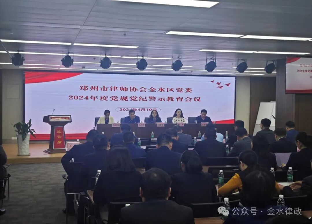 为落实郑州市司法局党委、市律师行业党委关于深入贯彻学习习近平新时代中国特色社会主义思想和党的二十大精神,结合金水区律师行业实际,2024年4月10日,郑州市律师协会金水区党委组织召开“2023年度基层党组织书记抓党建述职评议考核会”“2023年度党员发展及党建实务工作经验交流会”“2024年度党规党纪警示教育会”三个主题会议。金水区司法局律师工作主管领导、郑州市律师协会金水区党委书记刘慧敏,金水区司法局律师管理科科长、郑州市律师协会金水区党委副书记韩楠,郑州市律师行业党委委员、市律师协会常务副会长冯明辉,郑州市律师协会金水区党委副书记王星波,郑州市律师协会金水区律工委主任焦聪利,郑州市律师协会金水区党委委员刘红宝、智金良、丁磊、崔振东、张尽安,郑州市律师协会金水区律工委副主任、市律协惩戒委第七部部长崔喜建及金水区律所党(总)支部(含联合党支部)书记200余人参加会议。会议由韩楠主持。