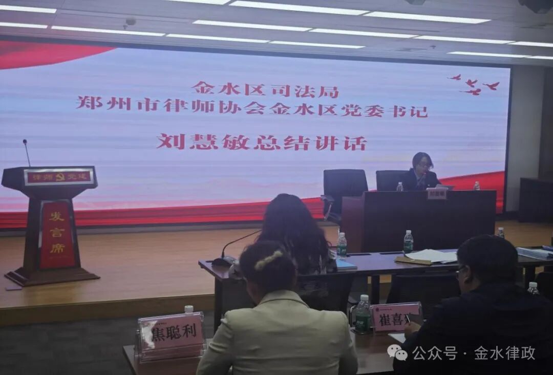 会议最后刘慧敏作总结讲话,郑州市律师协会金水区党委组织大家高效、务实的集中召开了2023年度党建述职考核、党员发展党建实务交流、党规党纪警示教育三个主题的大会。整个会议紧紧围绕三个主题进行了党组织书记代表述职,对现场述职及述职报告进行客观评议,进行了发展党员和党建实务的工作经验交流总结,同时按照省、市纪委监委的要求,开展了党规党纪警示教育方面的内容。2023年律师行业深入学习贯彻习近平新时代中国特色社会主义思想,贯彻落实习近平总书记对律师工作的重要指示,紧紧围绕“做党和人民满意的好律师”主题活动,积极响应和落实司法部党组的“五点希望”,以主题教育为主线,民法典普法活动为载体,推动了律师行业党建工作高质量发展。基于此刘慧敏代表郑州市律师协会金水区党委对金水区律师行业提出五点要求,一、突出“政治建设”,牢固树立政治意识,抓好党的全面领导,加强政治理论武装,确保党组织正确领导行业发;二、夯实“基层建设”,充分发挥支部作用,推动党的号召要求落实到基层;三、落实“引领措施”,将党建工作与律师执业相融合,推动律师行业党组织和律师自律组织功能协同融合,以增强服务能力;四、强化“风清气正”,着重加强党员律师的职业道德教育,推动律师执业规范化,打造廉洁规范的律师队伍;五、推进“提质进位”,金水区律师行业要以“1+7”法务区建设为重点,努力打造法律服务一体化示范区,为金水律师行业发展注入新的动力。最后刘慧敏希望新一年度的党建工作在总结经验的基础上,对标对表更高要求,确保金水律师行业党建工作整体水平有新提升、新突破、新成效,促进金水律师行业的大提升、大突破、大成效。
