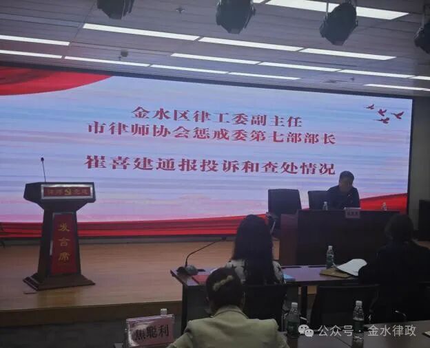 崔喜建通报了金水区律师行业的执业违规纪问题投诉和查处情况。丁磊就党员违规违纪问题如何处理进行讲解。